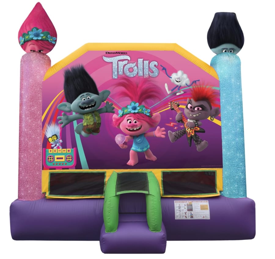 Delivered to your event! This X-Large Trolls Bounce House is sure to give your event an exciting look with fun and laughter for all guests that enter this amazing bounce house. This classic bounce house is recognized by everyone, whether they have enjoyed one themselves, rented one for a party or simply seen one set up for a neighborhood party.