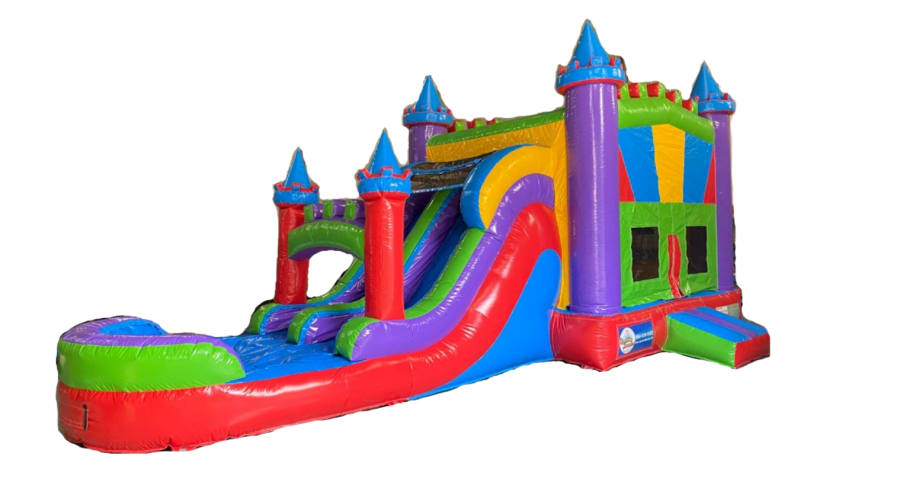 Guests of all ages will love this 2 Lane Colorful Castle Combo! This is a large party inflatable with a slide, bounce area, as well an inside hoop for added fun! The Colorful Castle Scheme and vibrant colors are eye-catching, and the double-lane slide provides hours of entertainment, whether you choose to use it wet or dry! Your party will be the most commented and unforgivable experience and your friends and family will love it. Book now before it's gone.