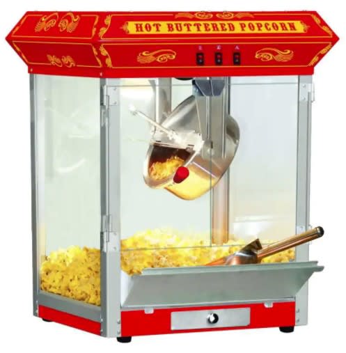 Who’s ready for some tasty buttery popcorn at your next event? Everyone loves fresh popped popcorn that will keep guests coming back time and time again snacking the entire time. Our theatre styled butter popcorn machine rentals can be addicting for everyone. Just turn the machine on and let it warm up, cut the package option of salted kernels and oil, add it to the kettle, then sit back and watch the magic happen. Let us deliver a movie theater style popcorn machine to compliment your event and celebration. Popcorn machine is delivered complete with popcorn and bags for up to 50 guest.