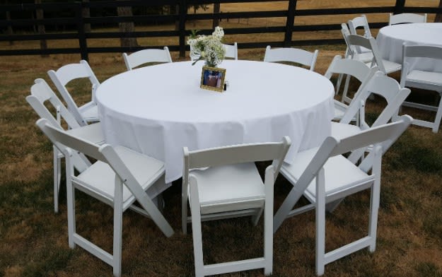 The White Resin Folding Chair with padded seat combines comfort and elegance that looks good at all your special events, whether it's a backyard barbeque, a formal banquet or wedding. This chair is made from ultra-strong resin that's very lightweight, yet extremely strong and can hold up to 1000 pounds making this portable folding chair perfect for any social event. Width: 17" Depth: 18" Height: 31"